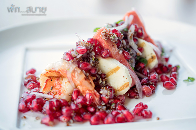 สลัดแตงโม กุ้งย่างและฮาลูมีชีส 480++