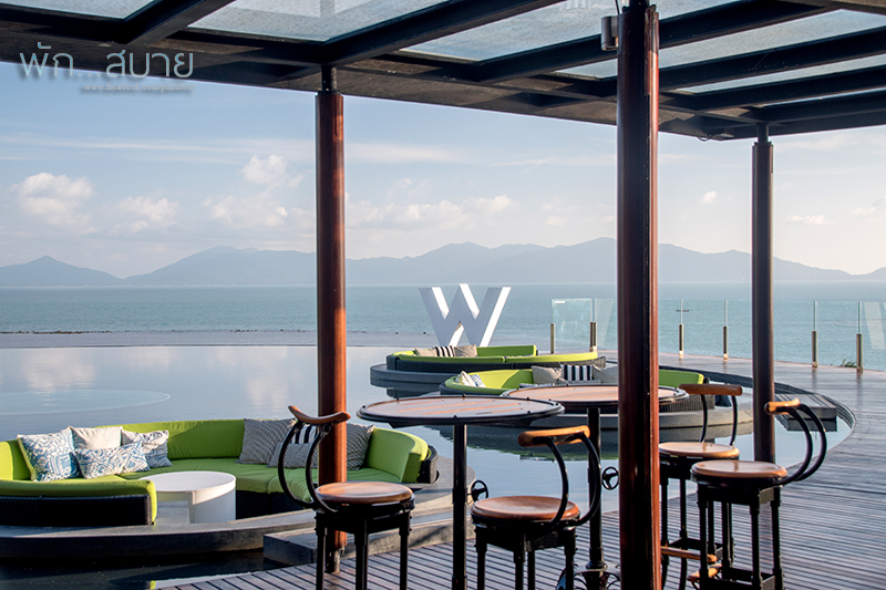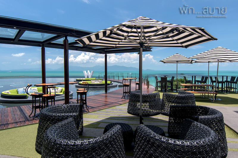 คำตอบแรกน่าจะเป็น Woo Bar ฮะ ขอบอกเลยว่า วิวจากวูร์บาร์ที่นี่ไม่เป็นสองรองที่ไหนในสมุย ต้องกราบเท่านั้นจริงๆ คนส่วนใหญ่จะได้รู้จัก W KOH SAMUI ด้วยภาพจากวูร์บาร์นี่แหละฮะ บริเวณนี้แขกนอกก็สามารถเข้ามาทานได้ด้วยนะฮะ มีค่าเข้าอยู่ที่ 1000 บาท/คน ซึ่ง 1000 บาทนี้เอาไปแลกเครื่องดื่มของกินได้ด้วย เรื่องดริ้งบอกไม่ได้ว่ารสชาติเป็นไง เพราะ…บอยไม่ดื่มฮะ แต่จากแอบดูจากที่คนอื่นสั่งดริ้งมาซดๆกันก็ดริ้งก็หน้าตาดีใช้ได้เลยนะ ราคาดริ้งเริ่มต้นที่ประมาณ 420++