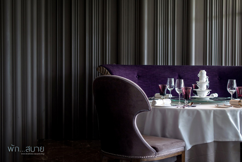 อาหารจะเป็นฝรั่งเศสตำรับชาววัง เปิดให้บริการทุกวันมื้อกลางวันเวลา 12.00 น. – 14.30 น. และมื้อค่ำาเวลา 18.00 น. – 22.00 น.