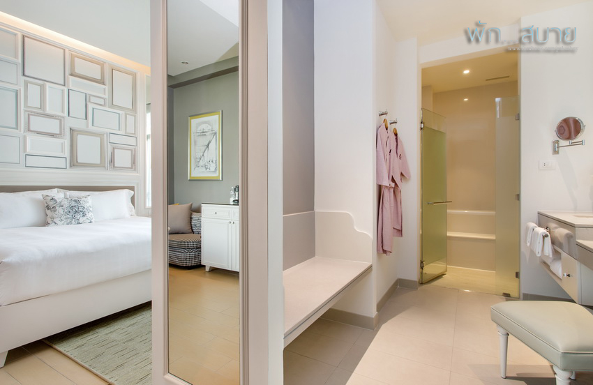 ห้องสวีท คือห้องที่สวยที่สุดของที่นี่ฮะ เรียกว่าเป็นหน้าเป็นตาก็คงไม่ผิด ห้องนี้จะได้สิทธิ์พิเศษต่างจากห้องอื่นๆคือ อเมนิตี้ในห้องน้ำ BVLGARI + Welcome cocktail & canapes 1 ชม. + ฟรีมินิบาร์
