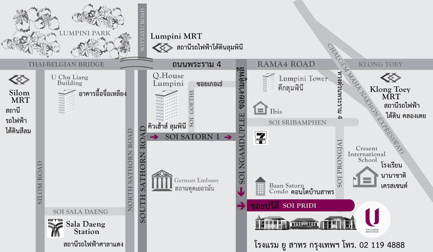 ทำเลอยู่สาทร ซอย 1 แอบลึกอยู่เหมือนกัน ถ้าใครจะมาพักหรือเข้ามาโรงแรม โทรให้โรงแรมเอาตุ๊กๆมารับได้ฮะ ส่วนใครจะออกก็จะมีบริการรถตู้มาส่งที่ MRT หรือ หน้าปากซอยฮะ อย่าพยายามเดินเองนะฮะ ลุงเตือนไว้แล้วนะ อย่ามาบ่นทีหลังน้าาาาาา