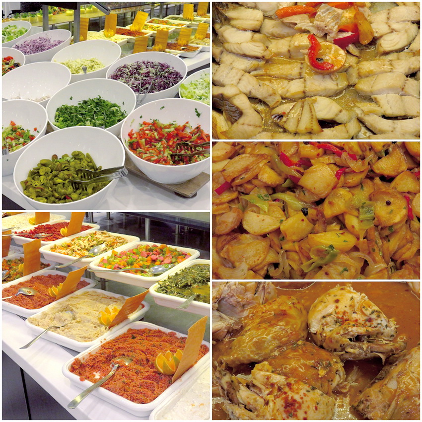 2 อาหารแบบบุฟเฟ่ต์ เนื้อสัตว์จะวนที่ ไก่ แกะบด ปลา ฮะ ที่ดีมากๆๆคือ ผัก