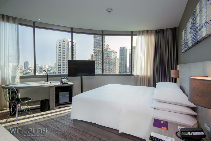 หน้าตาห้องเริ่มต้น ก็จะประมาณนี้ฮะ ห้องที่ลุงไปชมเป็นห้องมุม กระจกเลยที่โค้ง ถ้าเป็น กลางตึกกระจกตรงปกติ เวลาพัก แนะนำให้ขอฟลอชั้น 13 ขึ้นไปนะครับ ถ้าหันหน้าเข้าโรงแรมแล้วให้ขอห้องฝั่งซ้ายมือฮะ เพราะฝั่งขวาจะโดนบล๊อกวิว โดยรวมจากหน้าตา จะเห็นได้ว่าหน้าตาเหมือนห้อง Specialty Room เลย แค่ขนาดห้องเล็กกว่า และไม่มีโซฟาเบด เท่านั้น