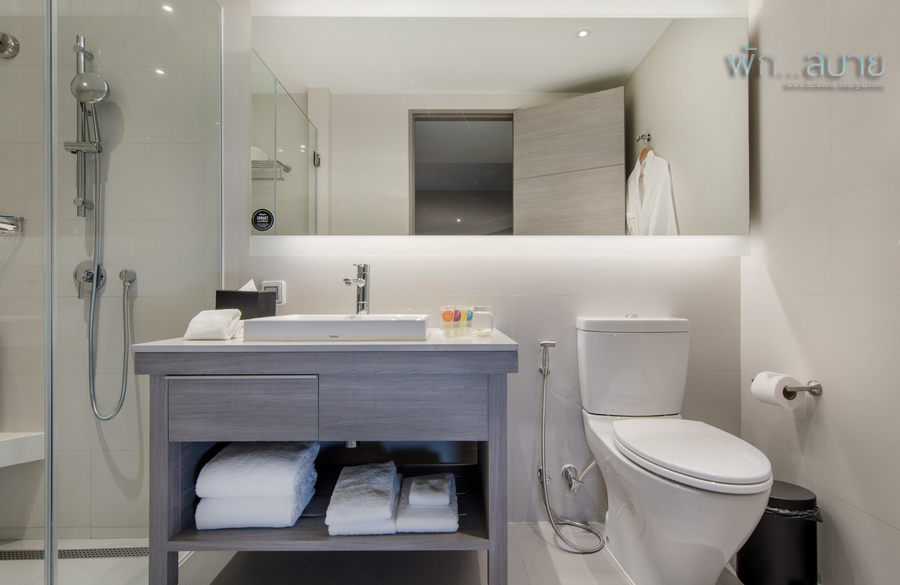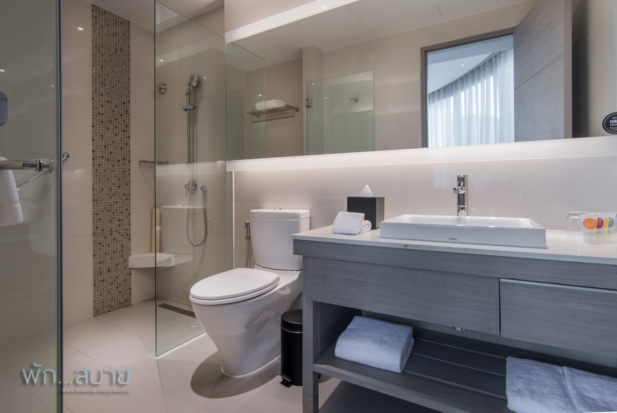 ห้องน้ำขนาดและหน้าตาเหมือนห้องในระดับเริ่มต้น ไม่มีอ่างอาบน้ำให้ ใครที่ชอบอ่างอาบน้ำอาจจะไม่ค่อยปลื้ม ส่วนสุขามีสายชำระให้ฮะ