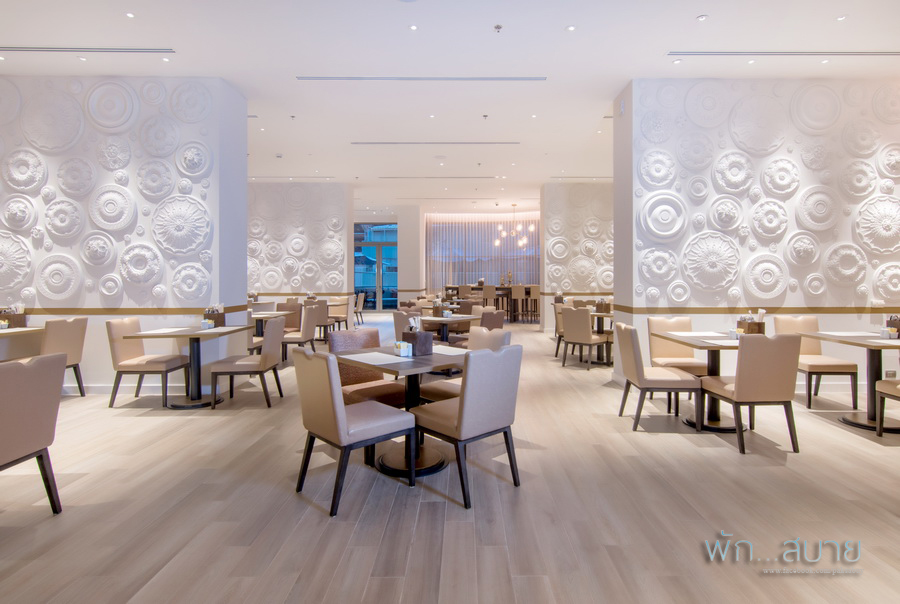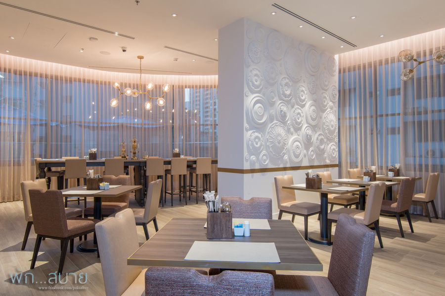 ห้องอาหาร ของโรงแรมอยู่ที่ชั้น 3 จะเปิดบริการแต่อาหารเช้าเท่านั้น 6.30 -10.30 น. โดยรวมการตกแต่งคอนเซ็ปเดียวกับลอบบี้ เน้น เรียบๆ แต่ สวยหรู ชอบโทนสีที่ใช้มากเลย ดูแพงจริงๆ