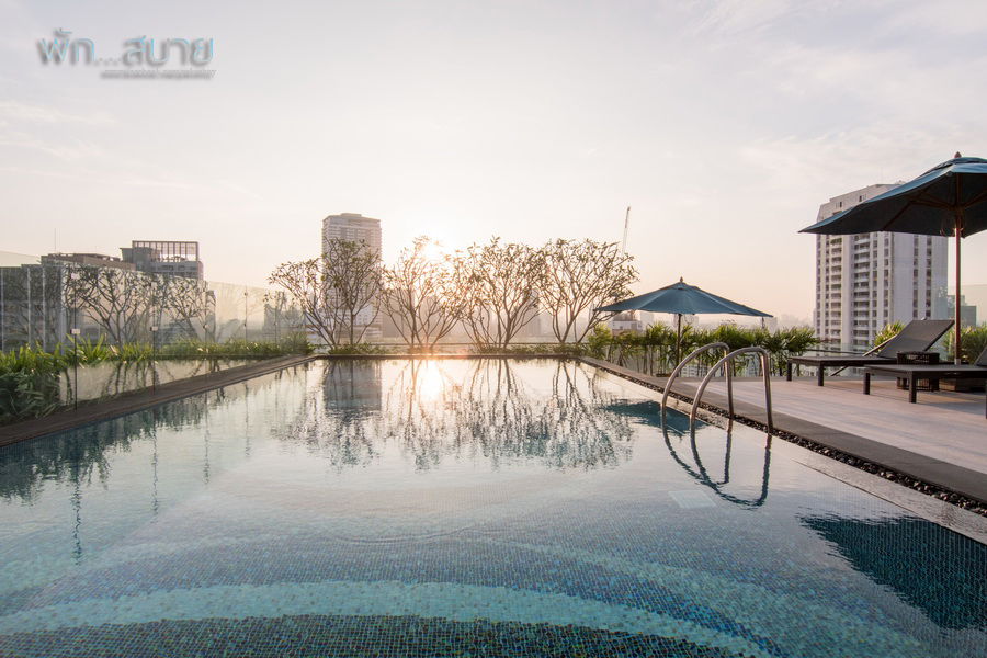 สระว่ายน้ำอยู่ชั้นที่ 19 โดยรวมขนาดไม่ใหญ่นะครับ แต่ก็ไม่ได้เล็กจนน่าเกลียด ว่ายเล่นสบาย แต่ว่ายออกกำลังกายอาจเล็กไปสักนิด ส่วนวิวก็โดนบล๊อกไปฝั่งนึง อีกฝั่งนึงวิวดีอยู่ฮะ