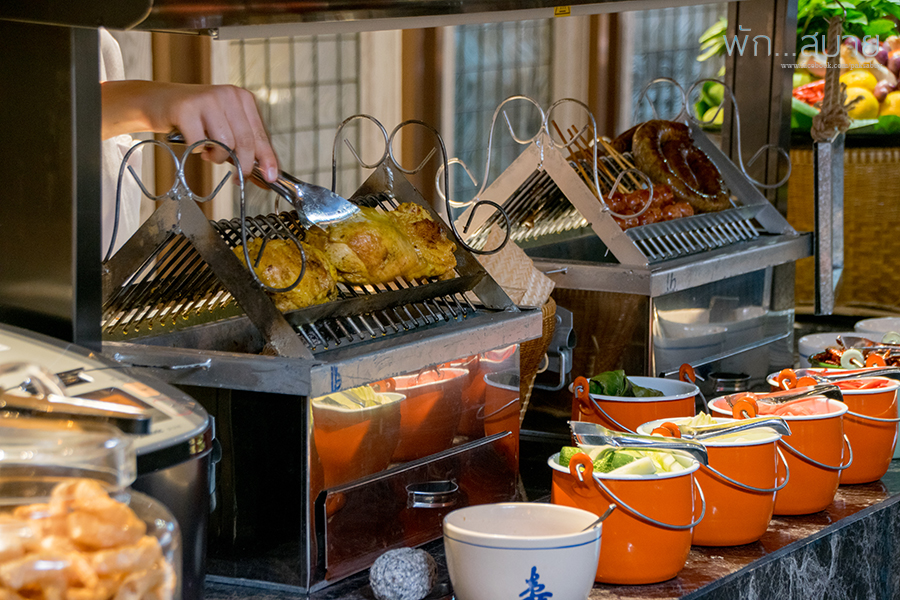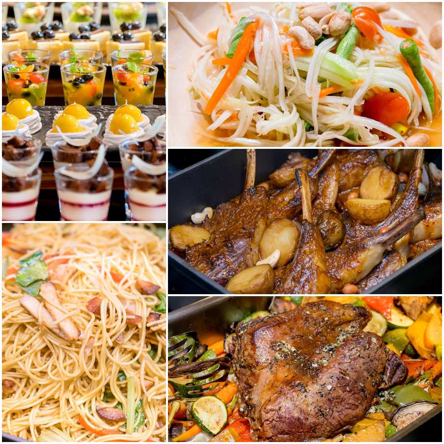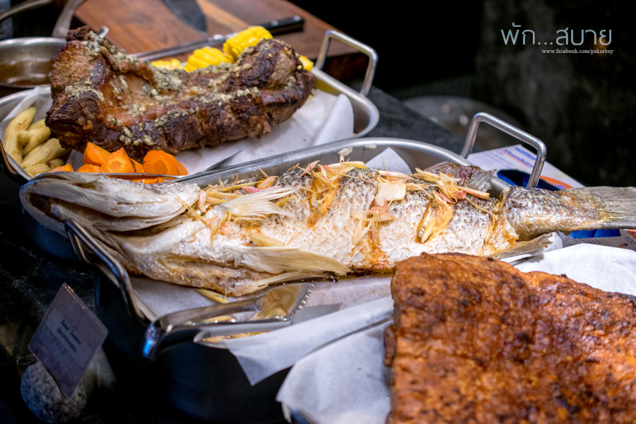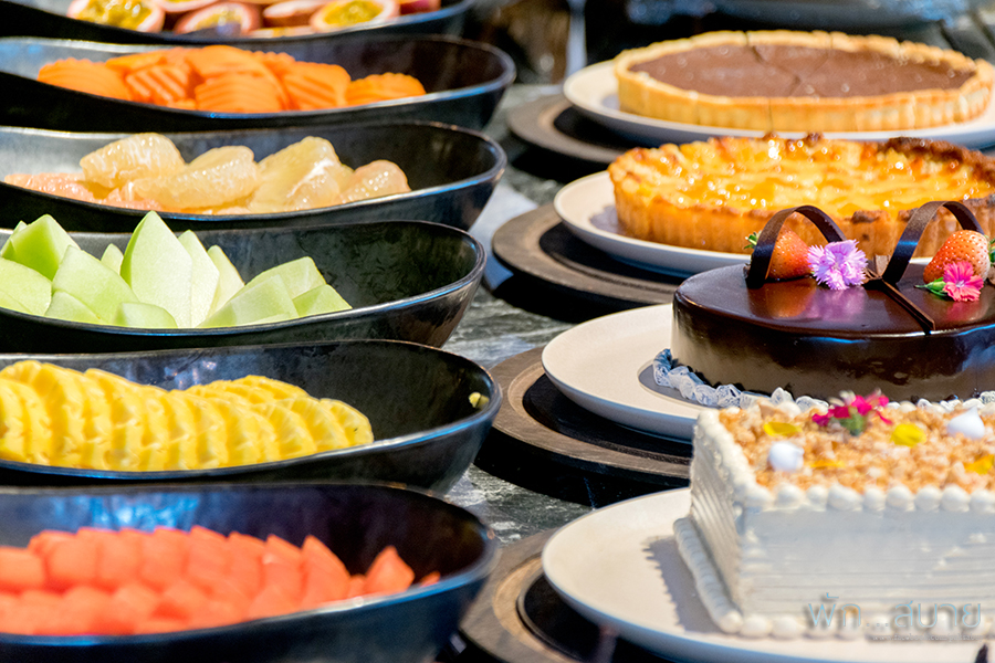 ซีฟู้ดบุฟเฟ่ต์เป็นเหมือนเราไปเดินจ่ายตลาดฮะ เลือกของสดไปให้เชฟทำ จะเป็น ผัดผงกะหรี่ ผัดพริกไทยดำ ทอดกระเทียม หรือ ย่างได้หมด นอกจากนั้นยังมีเมนูอาหารนานาชาติให้ทานกันด้วย ไม่ว่าจะเป็นแกะอบ เนื้ออบ ติมซำ (แต่บอกเลยฮะ กินซีฟู้ดกันเยอะๆฮะ เอาให้คุ้ม อะไรตัดกำลังอย่าไปกินมันเลย) ส่วนขนมหวานแนะนำพระยาชีสเค้กฮะ อร่อยล้ำมว้ากกกกกกก