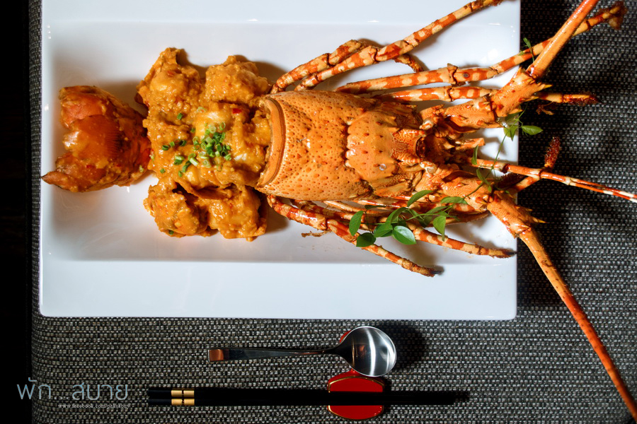 กุ้งมังกรผัดไข่เค็ม ราคาคิดตามน้ำหนัก 588++/100 กรัม