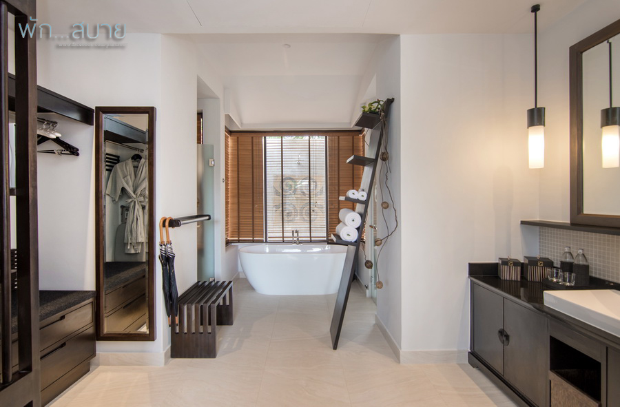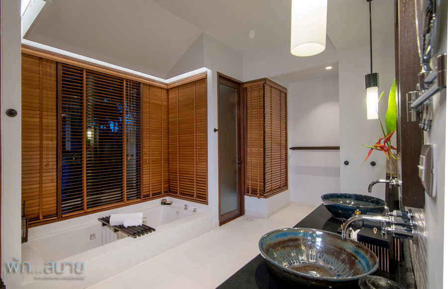ห้องอาบน้ำแยกโซน สุขา (มีสายชำระ) ห้องอาบน้ำ อินดอร์ เอาท์ดอร์  อ่างอาบน้ำ และ ห้องแต่งตัว กันอย่างชัดเจน