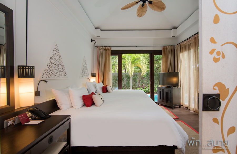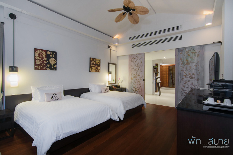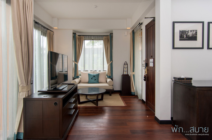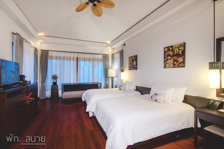 แม้จะเป็นห้องเริ่มต้นก็มีขนาดถึง 120 ตรม เรียกว่ามีขนาดใหญ่กว่าห้องเริ่มต้นของโรงแรมทั่วไปถึง 3 เท่า ( 35-40 ตรม ) ใหญ่เทียบเท่ากับห้องพักของไอบิสต่อกันถึง 6 ห้องทีเดียว การตกแต่งภายในห้องพักเป็น ไทยประยุกต์ผสมผสาน วิวก็จะเป็นวิวสระว่ายน้ำฮะ มีสองชั้น แนะนำชั้นล่างฮะ สำหรับคนสุงอายุ เพราะ วิวก็ไม่ได้ต่างกันหรอก จะได้ไม่ต้องขึ้นลงบันไดให้เหนื่อย