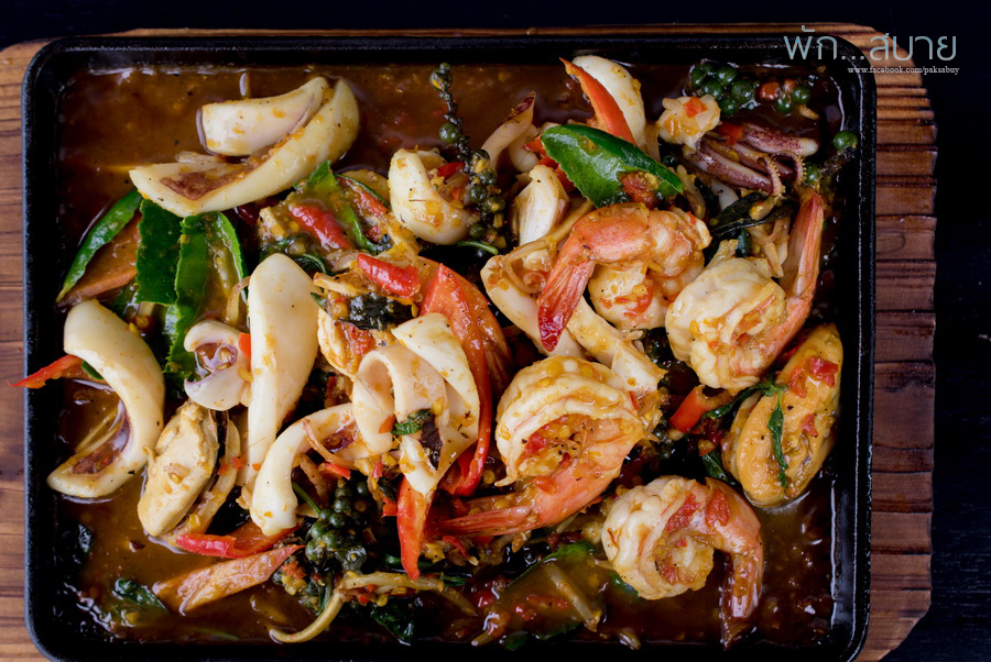 ทะเลผัดฉ่ากระทะร้อน 260 เน็ต กุ้ง หมึก สดนะฮะ พอชั่นนี้สำหรับทาน 2-3 คน รสจัดประมาณนึงเลย