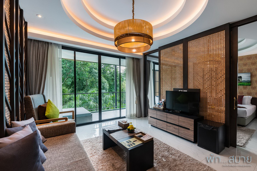 Executive Suite (พื้นที่ 71 ตร.ม.) เป็นห้องพักสไตล์ Oriental Modern มีระเบียงกว้าง วิวภูเขา บรรยากาศโปร่งสบาย แบ่งโซนห้องพักเป็น 2 ส่วน คือ ห้องนอนและห้องนั่งเล่น พร้อมอ่างจากุชชี่ที่ระเบียงห้อง