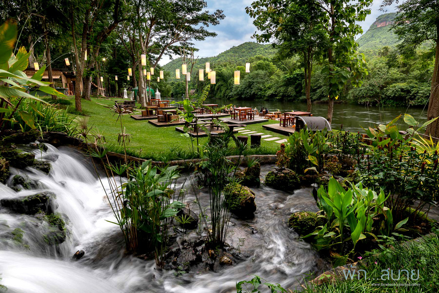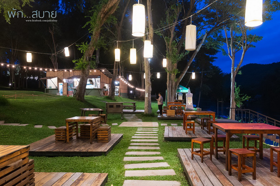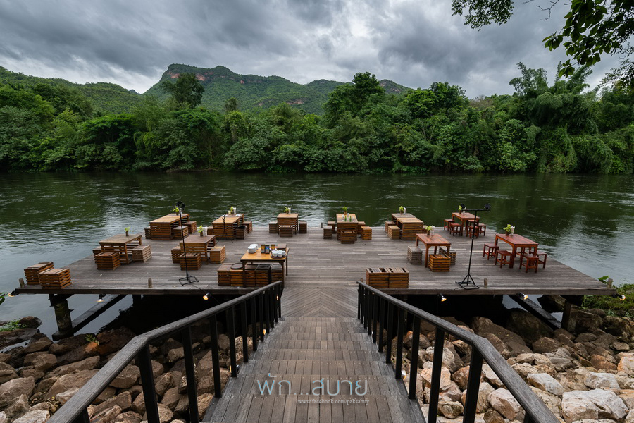 เป็นร้านกลางแจ้ง ท่ามกลางบรรยากาศสวนอาหารริมแม่น้ำแคว กลางวันกับกลางคืนจะเป็นคนล่ะบรรยากาศกันเนอะ บรรยากาศโดยรวมๆ ลุงชอบที่ห้องอาหารนี้มากกว่าอาหารเช้านะ อาจเพราะติดริมน้ำด้วย ส่วนเมนูแนะนำส่วนใหญ่จะเน้นไปที่อาหารพื้นบ้าน เช่น สันคอหมูคั่วพริกสด / ต้มยำปลาคัง / แกงป่าไก่บ้าน / ปลากะพงทอดน้ำปลา / หมูผัดใบยี่หร่า ทุกเมนูรสชาติจัดจ้านถึงเครื่อง แต่ไม่เผ็ดเกินไป ฝรั่งสามารถทานได้ อาจจะเผ็ดร้อนแค่พอเรียกเหงื่อได้นะ
