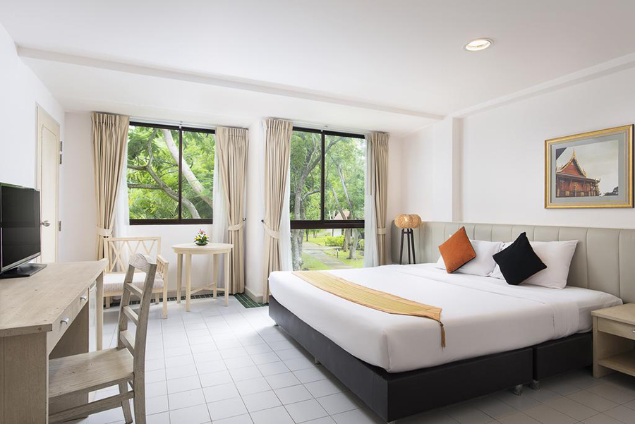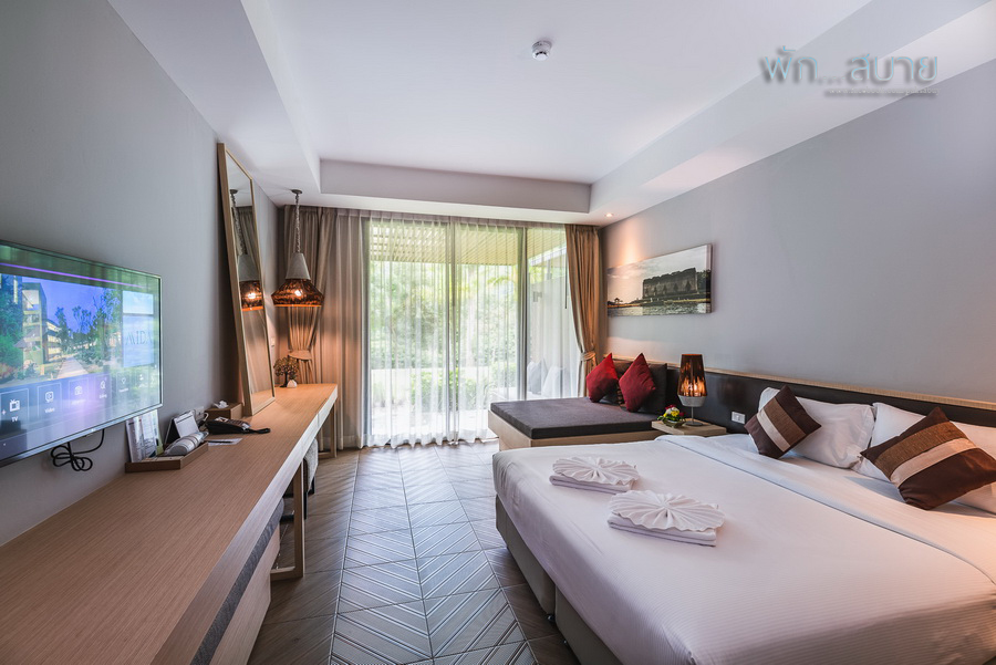 Grand Deluxe (พื้นที่ 39 ตร.ม.) เป็นห้องพักสไตล์ Modern ห้องพักนี้จะอยู่ชั้น 1 ของแต่ละตึก จึงมีชานนั่งเล่นส่วนตัวไว้รับลมชมวิวธรรมชาติ