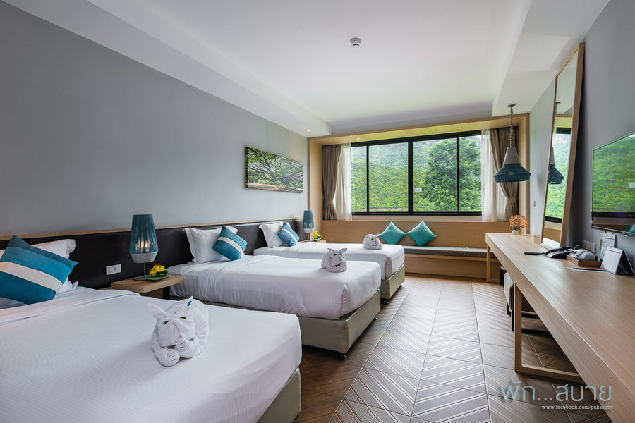 Family Deluxe (พื้นที่ 35 ตร.ม.) เป็นห้องพักสไตล์ Modern (เน้นสีขาว, น้ำตาล, เหลืองและฟ้า) ภายในมีเตียงนอนสบาย 3 เตียง มี Day Bed ให้นั่งเล่นชมวิว ห้องนี้เหมาะสำหรับครอบครัวมาเข้าพัก