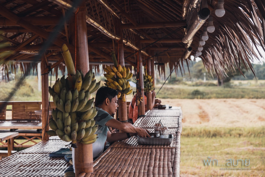 ที่นี่ตั้งอยู่ในอำเภอท่าม่วง จังหวัดกาญจนบุรี ริมทุ่งนาหลังวัดถ้ำเสือ เป็นคาเฟ่ราคาไม่แพงฮะ เครื่องดื่มประมาณแก้วล่ะ 50 รสชาติใช้ได้เลย ที่มีฉากวัดถ้ำเสือ เป็นฉากหลัง ตัวคาเฟ่ มีทั้งแบบห้องแอร์(ออกแนวๆปูนดิบห้องติดแอร์) กับศาลาในทุ่งนา จริงๆ ที่นี่วิวมันสวยมากเลยนะ จุดขายหลักน่าจะเป็น ศาลากลางนา ในช่วงทุ่งข้าวออกรวงเป็นสีทอง แต่ช่วงที่เพื่อนกับลุงไปนั้น เป็นช่วงที่เขาเกี่ยวข้าวไปแล้วทำให้ สภาพเดี้ยงๆอย่างที่เห็น ใครอยากไปถ่ายรูปสวยๆ แนะนำว่าลองโทรไปเช็คเรื่องฤดูเกี่ยวข้าวดูกับทางคาเฟ่ก่อนจะดีกว่าฮะ 085 681 8187