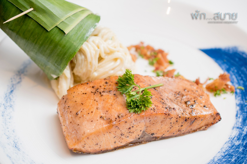 ส่วนใครชอบรสชาติที่ไม่จัดแนะนำ สปาเก็ตตี้คาโบนาร่ากับเสต็กแซลม่อนฮะ