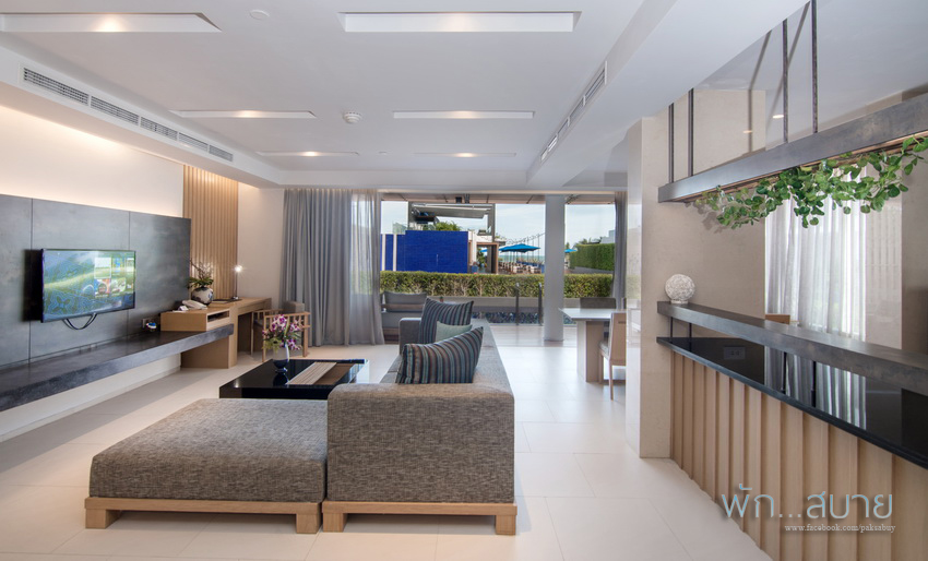 พูลสวีทแบบ 2 ห้องนอน สระใหญ่ก็มีฮะ ห้องนี้เหมาะสำหรับครอบครัวใหญ่เลยฮะ (แต่วิวอาจสวยสู้ ชั้น 2 ไม่ได้นะ)
