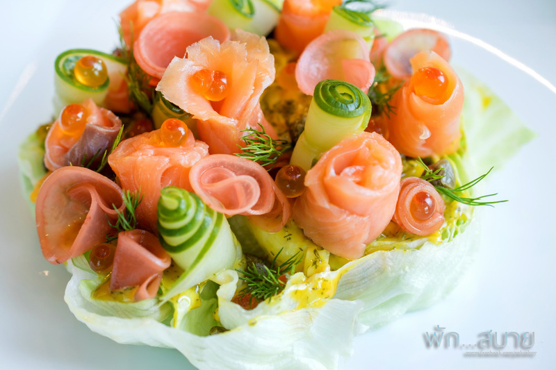 สลัดปลาแซลม่อนรมควัน+อิคุระ 320++ จานนี้อร่อยแบบสวยๆฮะ คล้ายช่อดอกไม้ สาวๆน่าจะชอบกัน รสชาตืมันคือสลัดปลาแวลม่อนที่ราดด้วยมัสตาร์ดฮันนี่ฮะ