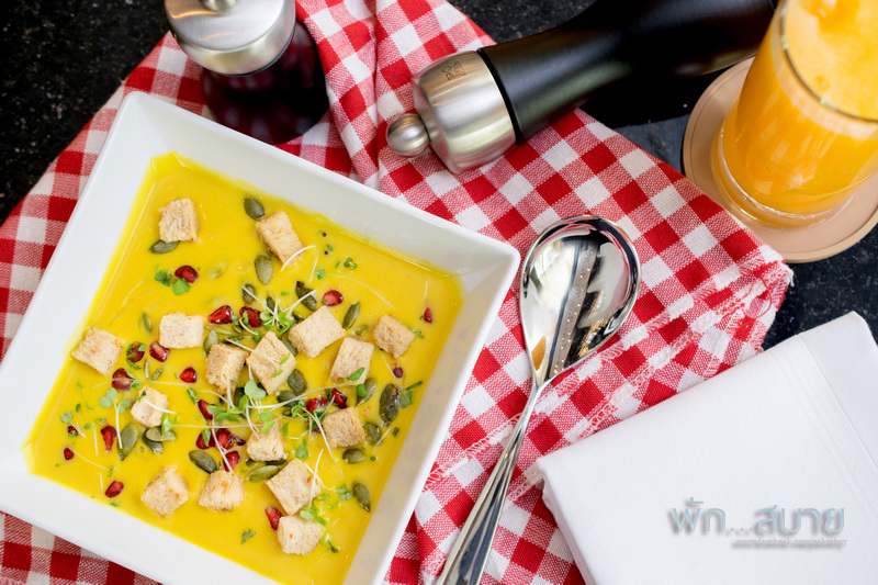 ซุปฟักทอง บ THB 190++ ไม่รู้จะสั่งอะไร แนะนำอันนี้ ก่อนฮะ อร่อย จริงๆ มี้ม็ดทับทิมมาตัดเลี่ยนด้วย อร่อยมากกก