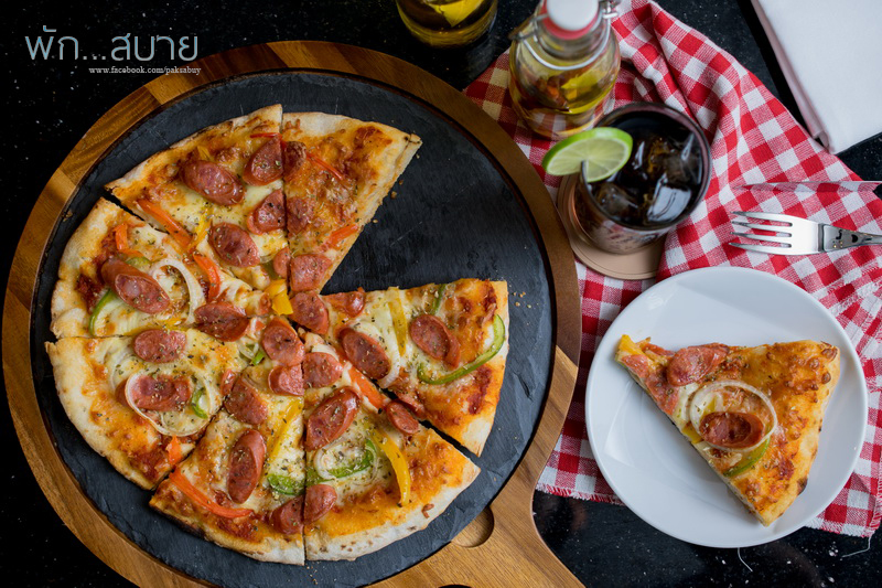 อิตาเลี่ยนซอสเซจพิซซ่า 260++ ไม่รู้จะสั่งอะไร เชิญเมนูนี้เลยฮะ ราคาโอเค รสชาติโอเค แป้งพิซซ่าเป็นแบบออริจินิลแบบทางอิตาลี่