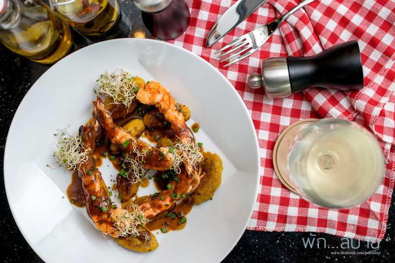 กุ้งลายราดซอสกุ้งเข้มข้นและยอกชี่ฟักทอง 660++ ยอกชี่ มันคือ พาสต้าชนิดนึงฮะ มีส่วนผสมหลักเป็นมันฝรั่ง (แต่ที่นี่เขาเปลี่ยนเป็นฟักทอง) ส่วนกุ้งลายเสือ และซอสกุ้งคือ สดเด้งมากกกก