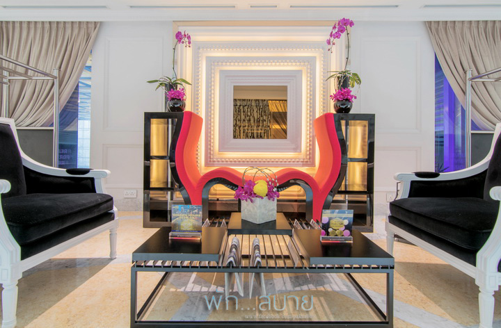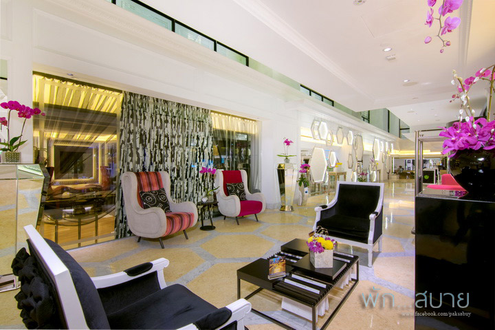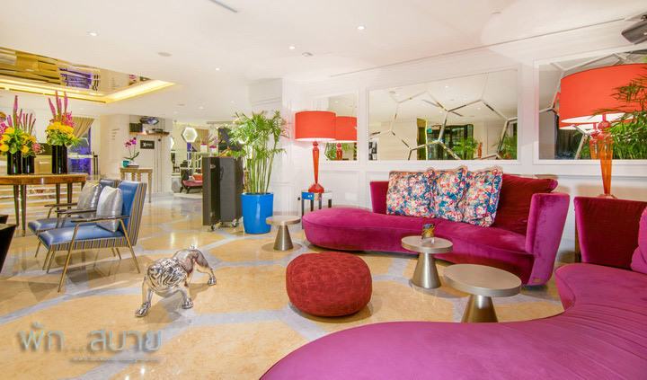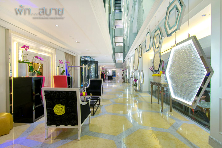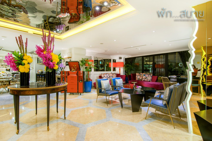 ลอบบี้โรงแรมมีขนาดพื้นที่จำกัดพอควร เพดานไม่ได้สูงมากอะไร การตกแต่งเน้นมิกซ์แอนแมท คอนเซ็ปความแตกต่างที่ลงตัว