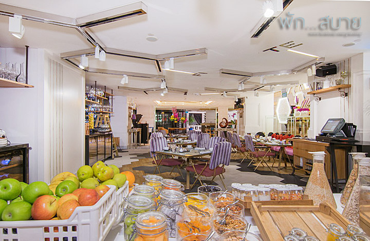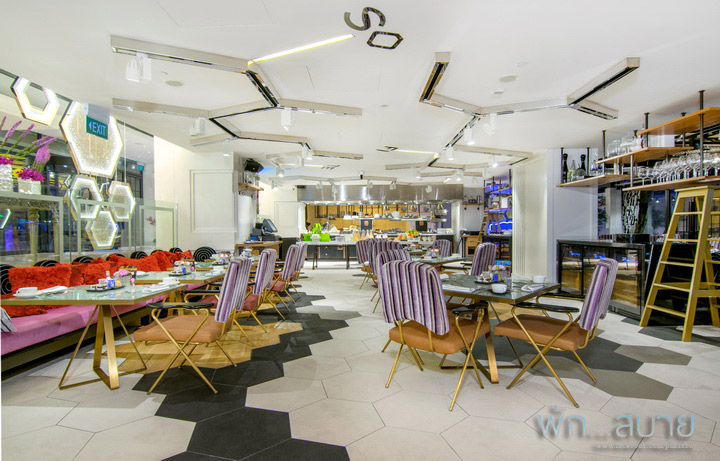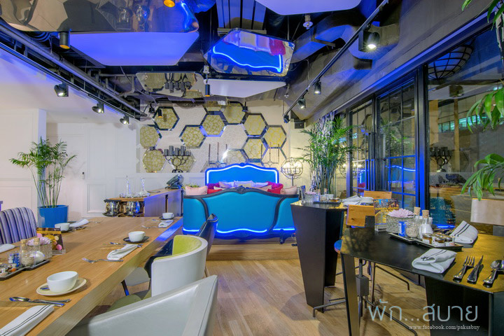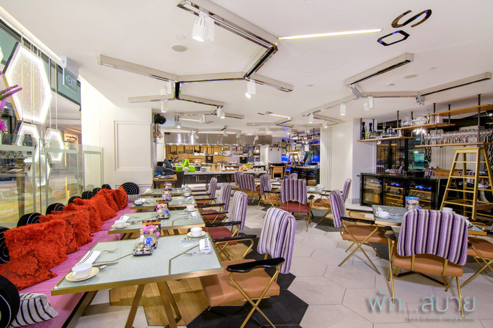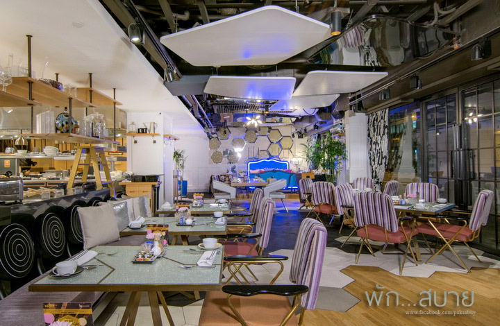 ในส่วนของห้องอาหารจะอยู่ติดกับลอบบี้ ห้องอาหารตกแต่งได้เกร๋มากๆๆ ชอบครับ ถึงเพดานจะไม่ได้สูงโปร่ง แต่ลูกเล่นแพรวพราวมากกก