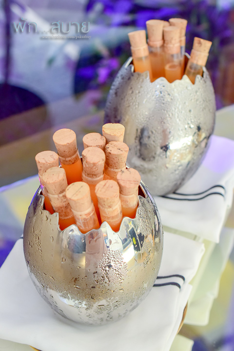 นี่คือเวลคัมดริ้งแบบปกติที่ทุกคนจะได้รับเมื่อมาถึง เห็นรีวิวอื่นๆอล้าอลังกว่านี้มากกกก ทำมั้ยผมไปกล้าเป็นแบบนี้ไปเนี้ยะ รสชาติก็เปรี้ยวๆหวานๆ ผสมๆกัน แต่โดยรวมคือน้ำผลไม้อ่ะครับ (อันนี้สอบตกนะที่ Sofitel So bangkok ดูมีลุกเล่นกว่าเยอะ ที่เสริฟน้ำอัญชันสีฟ้า แล้วเททอปปิ้งเป็นมะนาว พอคนจะเปลี่ยนเป็นสีม่วง แนะนำให้ไปคิดใหม่ทำใหม่ปรับปรุงใหม่นะ น่าจะมีอะไรว้าวกว่าน้ำผลไม้ใส่หลอดทดลอง )