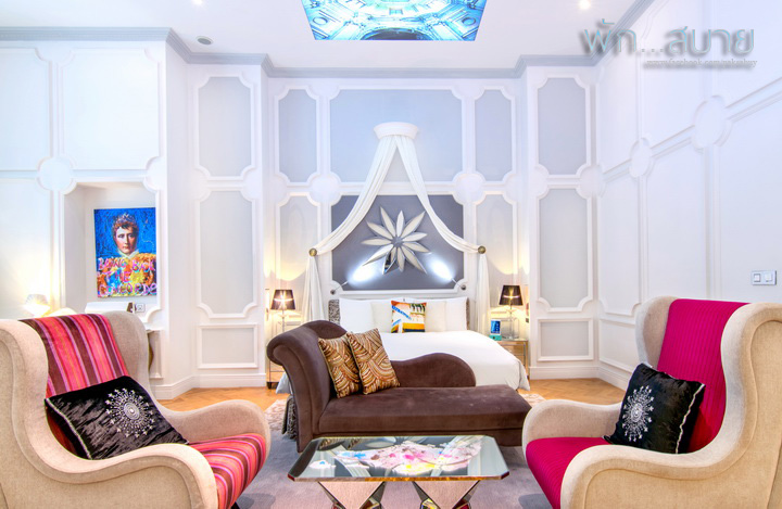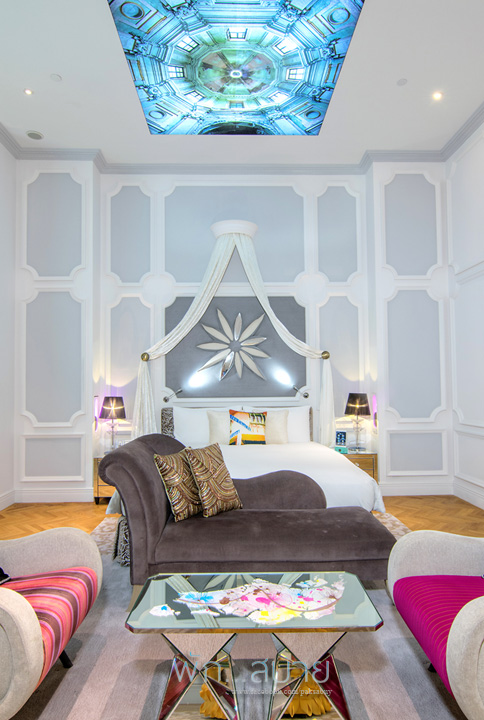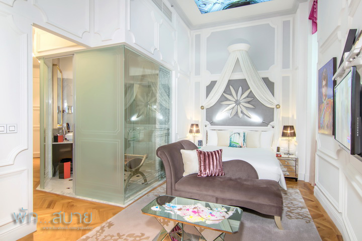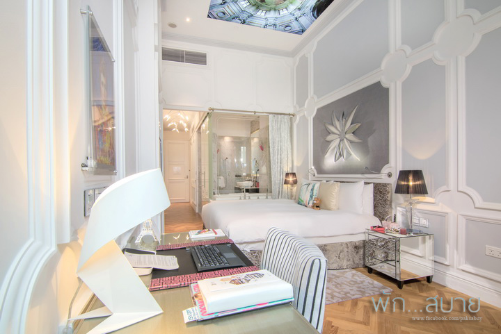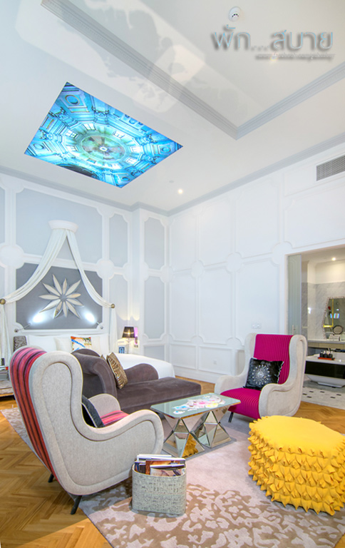 จะสังเกตได้ว่า ดอกจากเพดานห้องทุกห้องจะสูงแล้ว ยังมีฉากที่เป็นรูปโดมอยู่ด้วยทุกห้อง เพื่อให้เวลานอนแขกจะรู้สึกโปร่งโล่งสบายยยย (จริงเหรอ)