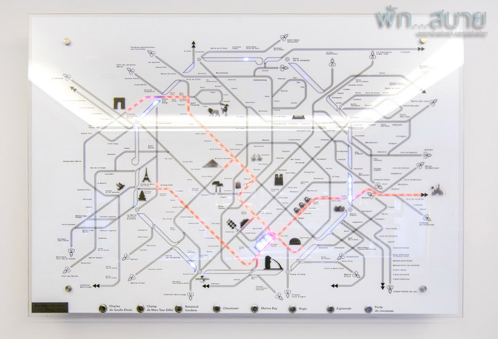 ในจุดด้านในสุด จะมีแผนที่ของโรงแรมกับสถานที่สำคัญต่างๆ เพียงเรากดปุ่มไฟก็จะวิ่งบอกเส้นทางที่เราจะไปแล้วครับ เป็นไอเดียที่ดีมากกกกกกกก (ถ้าโลกนี้ไม่มีกูเกิ้ลแมพ T__T )
