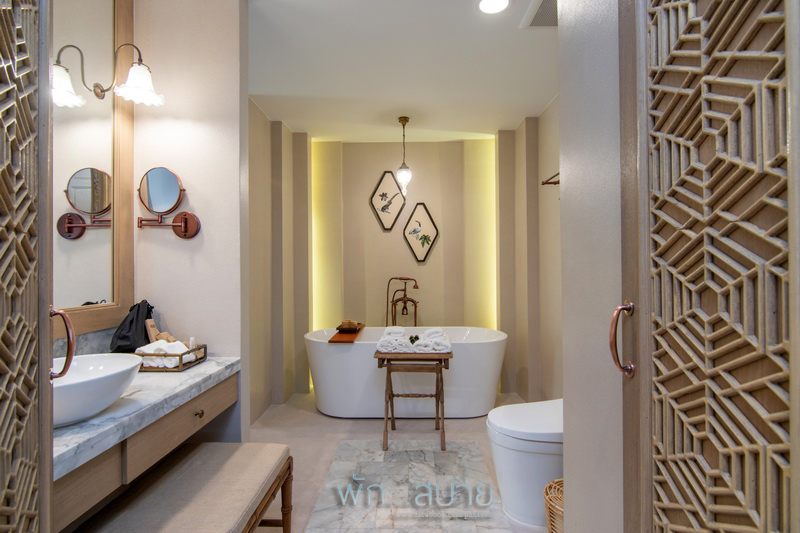 Seaside Junior Suite with jacuzzi ห้องนี้ใกล้กับ ตัวตึกลอบบี้มากที่สุด โดยรวมสวยงาม น่าอยู่มาก ข้อเสียของห้องนี้คือการแบ่งทุกอย่างออกเป็นสัดส่วนชัดเจนโดยใช้กำแพงกั้น มันเลยทำให้รู้สึกว่าทุกส่วนในห้องดูเล็กและแคบไปหน่อยนะ