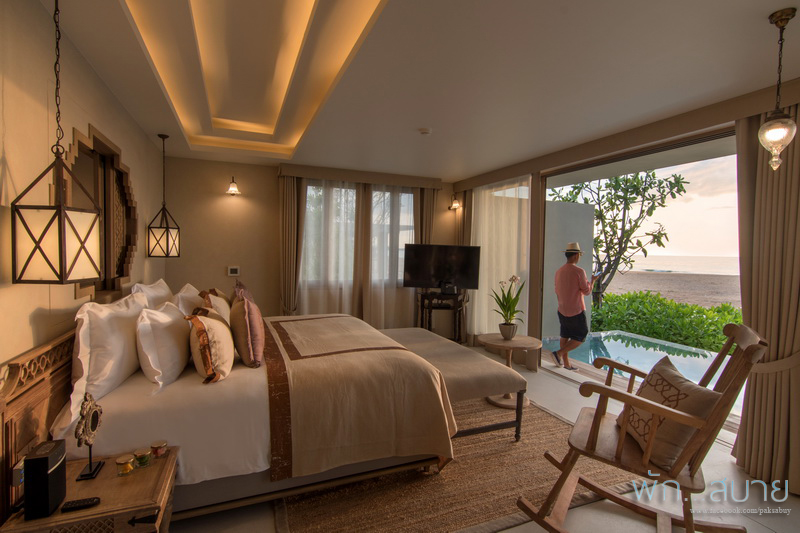 ตอบแบบไม่คิดเลยว่า คือ ห้องบีชฟร้อนพูลวิลล่าฮะ ห้องที่แพง (เกือบ) ที่สุดของที่นี่ วิวสวยสะท้านมากกกกก เอาจริงๆมีพูลวิลล่าน้อยมากในบ้านเรา ที่จะกล้าเปิดวิวโล่งขนาดนี้ ข้อดีคือวิว สวยมากกกกกกกก โดยเฉพาะตอนพระอาทิตย์ตก ส่วนข้อเสียคือ เมื่อเปิดเผยวิวขนาดนี้ความไพรเวทก็จะน้อยลงไปตามความสวยนั้นแหละฮะ ใครเดินผ่านหน้าหาดก็จะเห็นกันหมดเลย (ทางโรงแรมแก้เรื่องนี้โดยการจ้างยามเฝ้าหน้าหาดบริเวณนี้แยกต่างหากเลย)