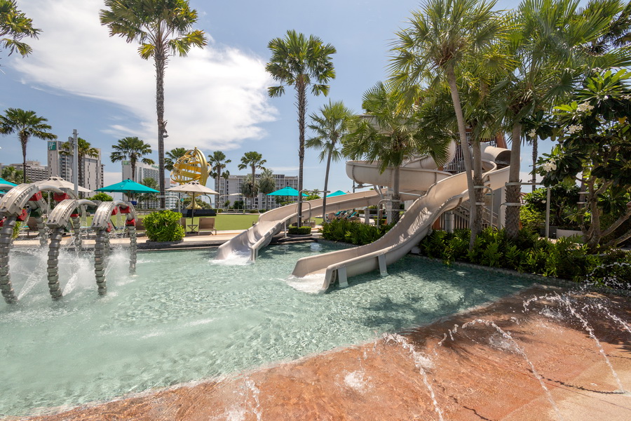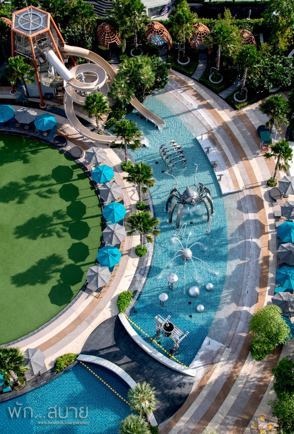 พื้นที่ส่วนกลางแทบทั้งหมดจะอยู่ที่ชั้น F ฮะ โดยจะประกอบไปด้วย สวนน้ำ สระพูลบาร์ สระผู้ใหญ่ คิดส์คลับ ฟิตเนส และ ห้องอาหารเช้า waves & wind