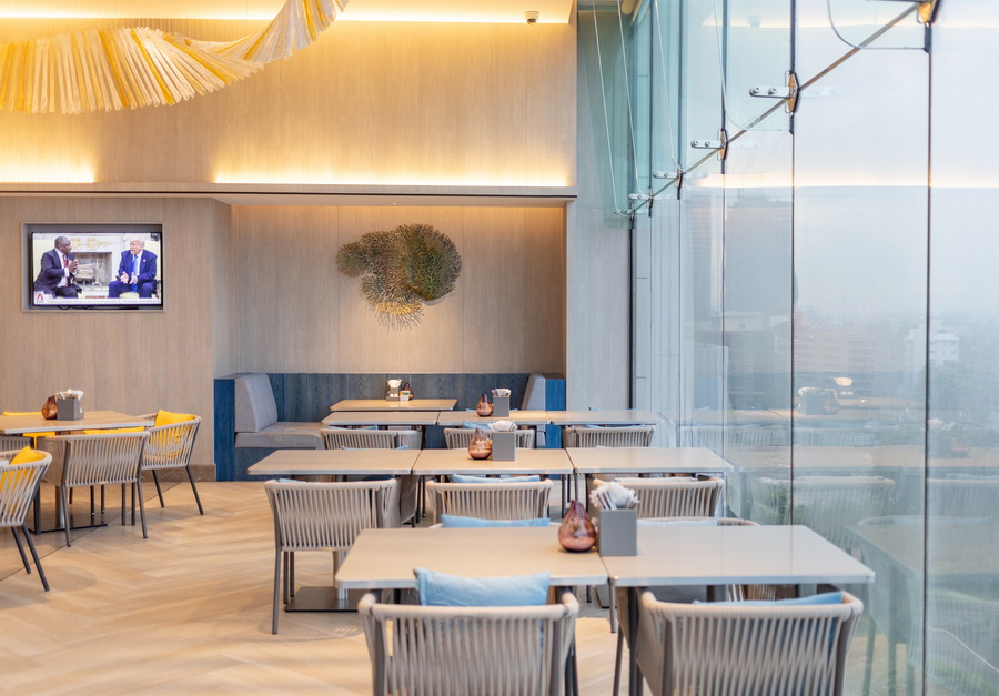 ห้องอาหาร Sky32 ปกติจะเปิดเฉพาะช่วงเย็น ( แต่ถ้าวันไหนแขกเยอะมากๆๆ ที่นี่ก็จะเสริฟอาหารเช้าด้วยฮะ) ฟีลของห้องอาหารก็คือรูฟท๊อฟบาร์ที่เน้นพื้นที่เอาท์ดอร์เยอะหน่อยฮะ โดยรวมคือวิวดี และ บริการดีมาก นะ