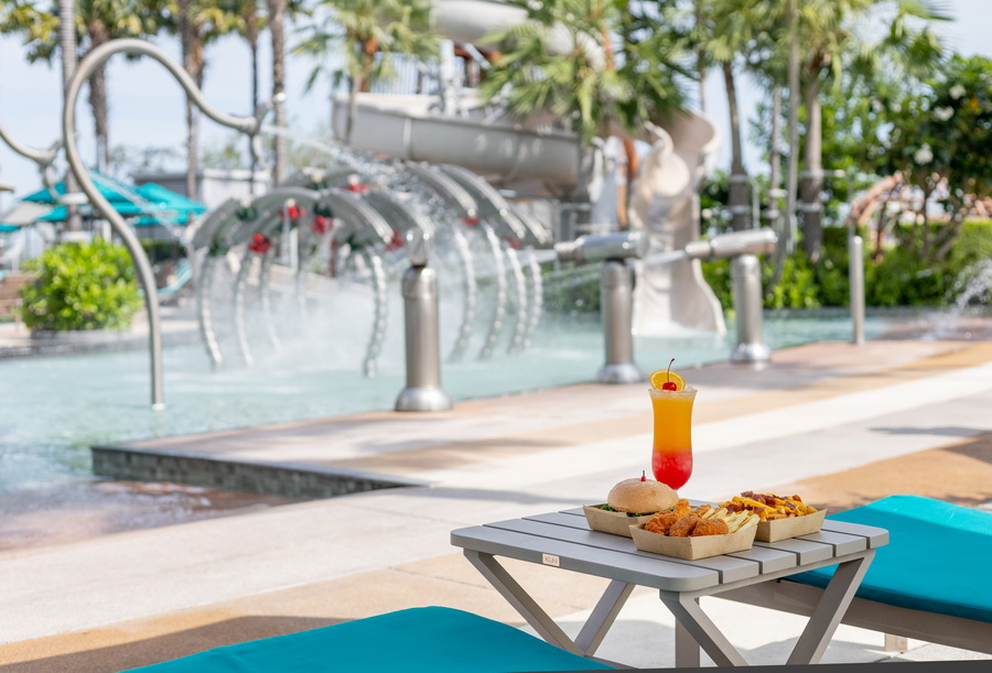 2 สระพูลบาร์ สระนี้น้ำจะไม่ลึกมากฮะ ถือเป็นสระที่ป๊อปปูล่านะ มีจัดกิจกรรมสำหรับเด็กบ่อยๆเลยที่สระนี้ ที่พูลบาร์จะมีบริการขายเครื่องดื่มและของว่างด้วยฮะ (ใครที่ซื้อโปรมา สามารถนำคูปองมาแลกรับ Snack Set ได้ที่จุดนี้ฮะ)