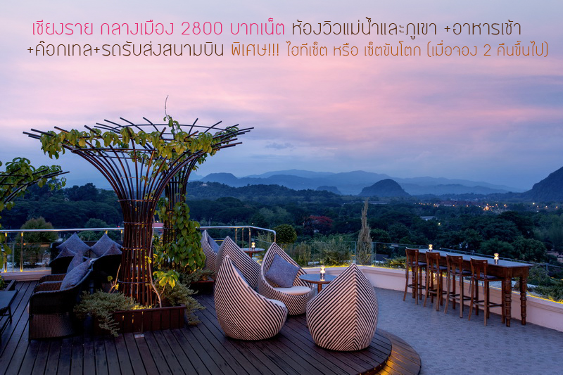 ถ้าเป็นเมื่อก่อน ลุงว่าน่าจะเป็นวิวริมน้ำกกและทิวเขาฮะ ถึงแม้จะอยู่ในตัวเมือง แต่วิวของโรงแรมกลับเป็นวิวที่เหมือนอยู่นอกเมืองออกไปเลย แต่ถ้าเป็นตอนนี้ ลุงว่าคงจะเป็น โรงแรมริมน้ำกก ที่มีสวนน้ำจริงจังหนึ่งเดียวในเชียงรายฮะ ตอนนี้ถือว่าเป็น รร สายแฟมิลี่เต็มๆตัวเลยฮะ