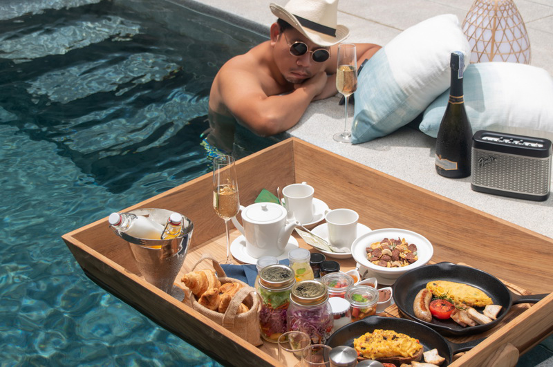 ส่วนผู้ใดจองโรงแรมไม่รวมอาหารเช้าไป ก็มีอีกตัวเลือกให้ ถ้าไม่อยากกินอาหารเช้าแบบธรรมดา floating breakfast ราคาต่อเซ็ตจะอยู่ที่ประมาณ 2000 บาท ให้ prosecco 1 ขวด