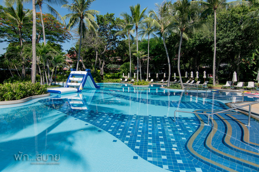สระว่ายน้ำส่วนกลางของ รร มีอยู่ด้วยกันทั้งหมด 4 สระ จะแบ่งตามโซนหรืออาคารที่พักฮะ