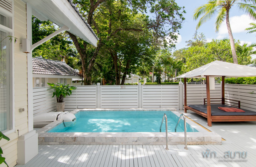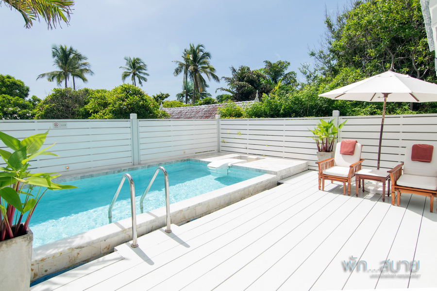 สระโซนวิลล่า ถือเป็นสระที่สวยน้อยสุด แต่ไพรเวทมากสุด มีไว้บริการแขกที่พักฝั่งวิลล่า