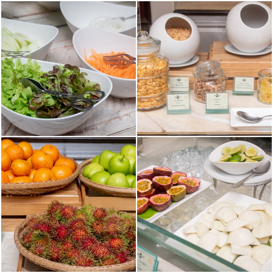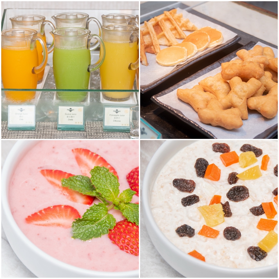 อาหารเช้าดีมั้ย ? ส่วนตัวว่าดีในระดับโรงแรม 5 ดาวควรจะเป็นฮะ มีไอเทมที่ควรจะมีครบทุกอย่าง วันที่ไปพักมีเมนูซีฟู้ดด้วยฮะ เป็นแกงเขียวหวานทะเล มีทั้งกุ้ง ปลาหมึก ปลา และ หอยเชลล์ คือมีซีฟู้ดครบเลย ข้าวผัดก็เป็นข้าวผัดหมูแบบเป็นชิ้นเป็นอันไม่ใช่ข้าวผัดไข่ธรรมดา (ส่วนเมนูไข่อย่างเอ้กเบเนดิกซ์จะมีเสริฟที่ห้องคลับเท่านั้นฮะ) อาหารส่วนใหญ่ก็ค่อนข้างรสชาติดีด้วยนะ ตัวอย่างเมนูอาหารเช้าบางส่วนในไลน์บุฟเฟ่ต์