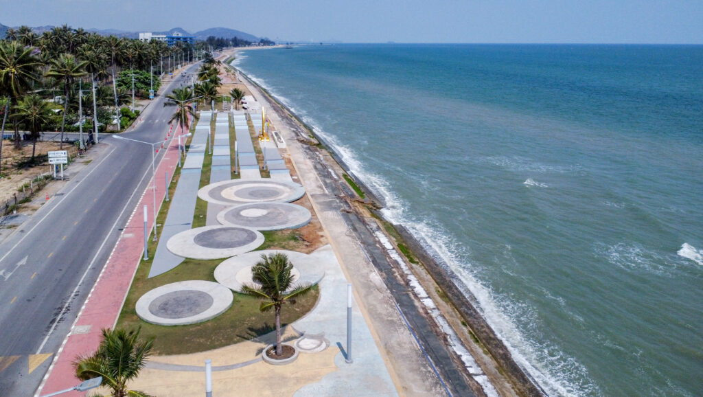 หน้าตาจะเป็นแบบนี้ฮะ ปกติจะไม่มีหาดโผล่มาฮะ แต่จะมีหาดโผล่มาตอนช่วงน้ำลงฮะ ช่วงเย็นๆบริเวณนี้จะมีรถเข็นอาหารมากมาย ลุงลองมากินดูก็ได้บรรยากาศดีนะ คึกคัก แต่ไม่แน่น ชิลล์ๆ สบายๆ ลมทะเลพัดเบาๆ แถมราคาไม่แพงเลย ส่วนช่วงเช้าก็จะมีคนมาวิ่งออกำลังกาย ฮะ ถือเป็นอีกฟีลที่ไม่เลวเลยทีเดียว