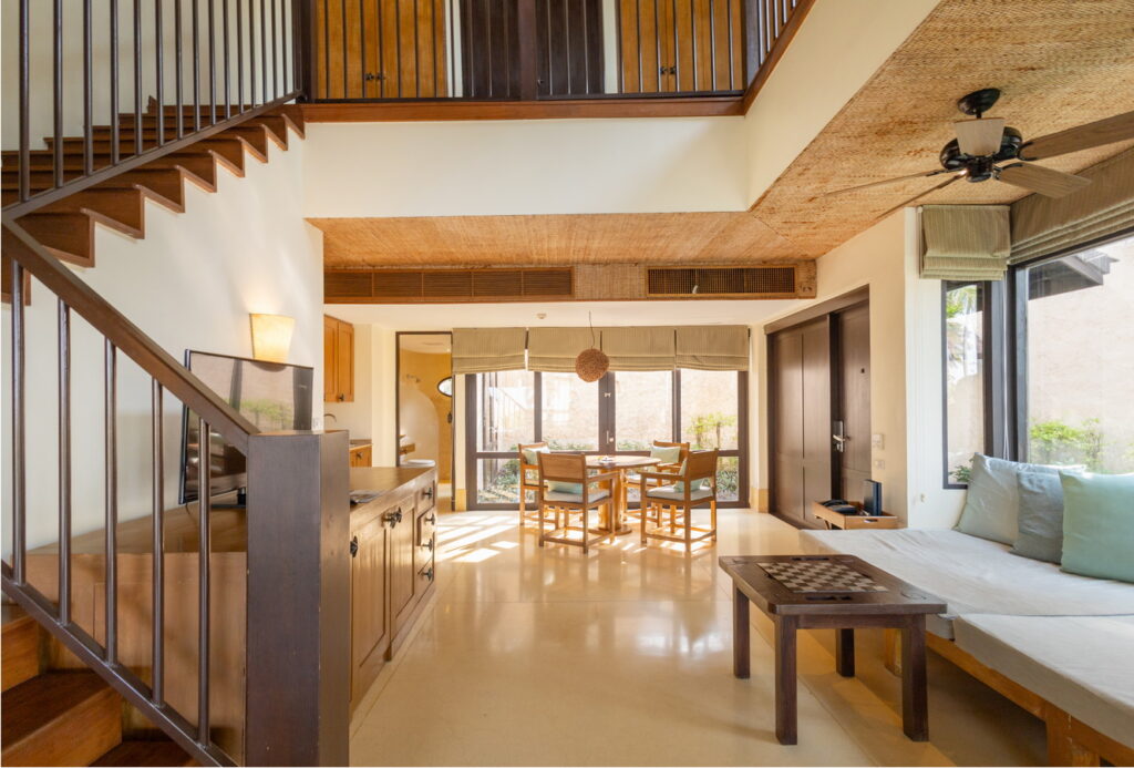 ความคุ้ใของห้องนี้คือขนาดนี่แหละ ห้องพักห้องนี้ ขนาดมีความ ใหญ่กว่าห้องเริ่มต้นโรงแรมทั่วไปถึง 7-8 เท่า พื้นที่ของสระมีขนาดความยาวน่าจะ 8-10 เมตร น่าจะได้ พื้นที่ใหญ่แบบอยู่ 4-5 คนไม่อึดอัดเลย พื้นที่ในห้องพัก ถูกแบ่งเป็น 2 ชั้น ชั้นล่างก็จะมีห้องน้ำ (มีห้องอาบน้ำ) ห้องนั่งเล่น ห้องอาหา ชั้นบนก็จะมีห้องนอน ส่วนนั่งเล่น ห้องน้ำใหญ่ อ่างจาฯริมระเบียง ห้องนี้เหมาะกับสายครอบครัว ปาร์ตี้เพื่อนฝูง