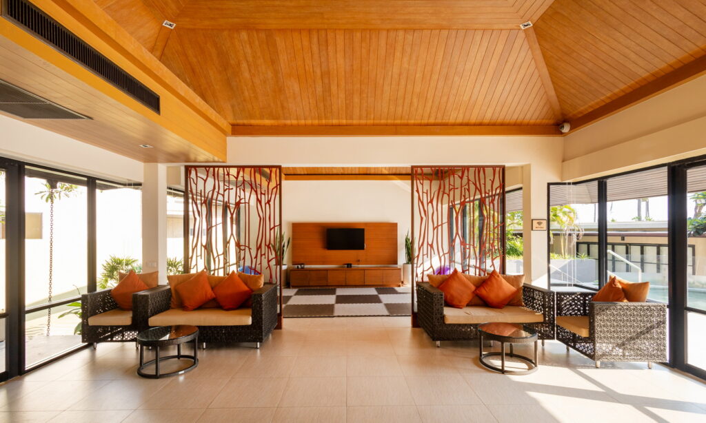 พื้นที่ส่วนกลางหลักของที่นี่จะถูกแบ่งเป็น 2 ส่วน คือโซนลอบบี้ และโซนริมทะเล โซนลอบบี้จะประกอบไปด้วย ลอบบี้ ห้องสมุด และ ห้องอาหารดาหลา (ตอนนี้เสริฟแต่อาหารเช้า)