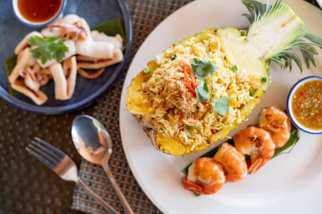 อาหารที่ห้องอาหาร ลูน่า ลา ปราณ ตอนนี้เป็นห้องอาหารหลัก จะเปิดช่วงเที่ยงๆถึงเย็นๆ ส่วนใหญ่จะเน้นที่อาหารไทย เช่น ผัดไทย แกงปูใบชะคราม ปลาหมึกแดดเดียว กุ้งซอสมะขาม ความสดถือว่าใช้ได้เลยนะ ใครชอบทานซีฟู้ด ทาง รร มีเซ็ตซีฟู้ดแพลตเตอร์ขายด้วย ส่วนขนมหวานแนะนำไอศครีมมะพร้ามโฮมเมดฮะ หอมมัน แอบติดหวานมากไปนิด แต่ก็ยังอร่อยนะฮะ