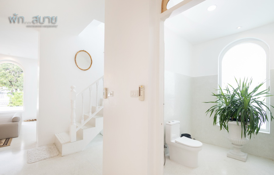 จุดสังเกต เนื่องจากเป็นพูลวิลล่าเช่าทั้งหลัง เรื่องความสะดวกสบายความเนี้ยบอาจได้ไม่เท่าโรงแรมฮะ ช่วงที่ไปพักอากาศค่อนข้างร้อน แอร์ชั้นล่างเอาไม่อยู่เลย (แต่ในห้องนอนเย็นสบายดี) ถ้ามีคนสูงอายุมาพักด้วยจะลำบากหน่อย เพราะห้องพักทั้ง 3 ห้อง จะอยู่ที่ชั้นสองทั้งหมดเลย บันไดแอบแคบและชันนิดนึง ส่วนเด็กเล็กอาจระวังเรื่องระเบียงฮะเพราะที่กั้นค่อนข้างเตี้ย