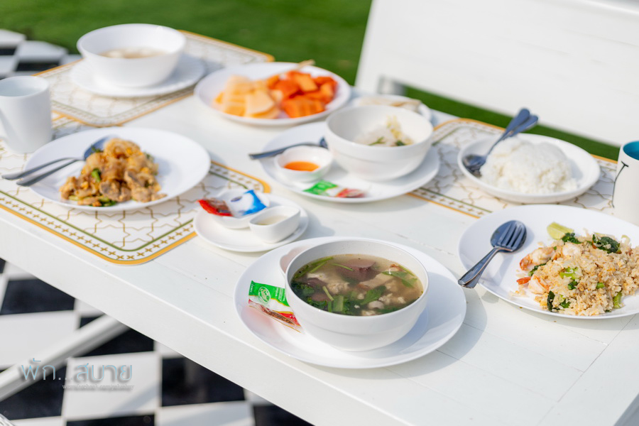 อาหารเช้า แม่บ้านจะไปซื้อมาให้ตอนเช้า จะเป็นร้านอาหารแถวๆวิลล่าฮะ ส่วนตัวว่าต้มเลือดหมูอร่อยฮะ