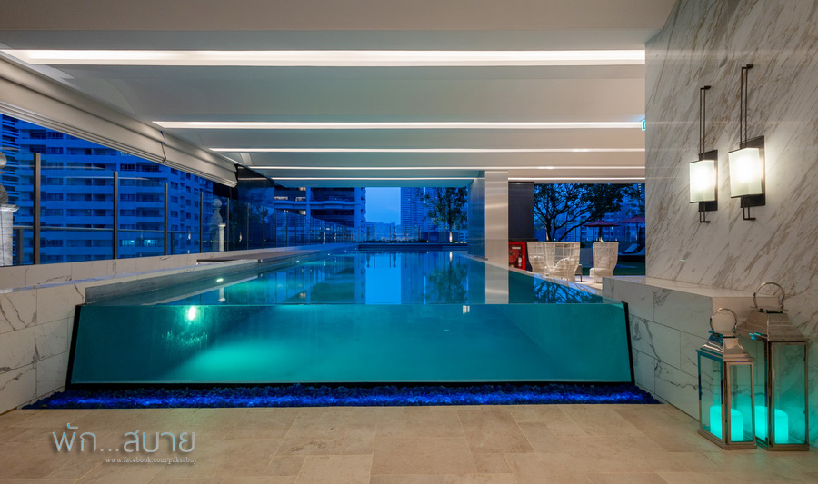 สระว่ายน้ำ ได้รับการออกแบบมาอย่างดี มีทั้งโซนในร่ม โซนกลางแจ้ง ที่ยาวต่อกัน เป็นรูปตัวแอล ทำให้มีขนาดพื้นที่สระก็ค่อนข้างใหญ่ ส่วนตัวว่า ช่วงบ่ายๆแก่ๆ ค่ำๆ จะสวยกว่าช่วงกลางวันฮะ