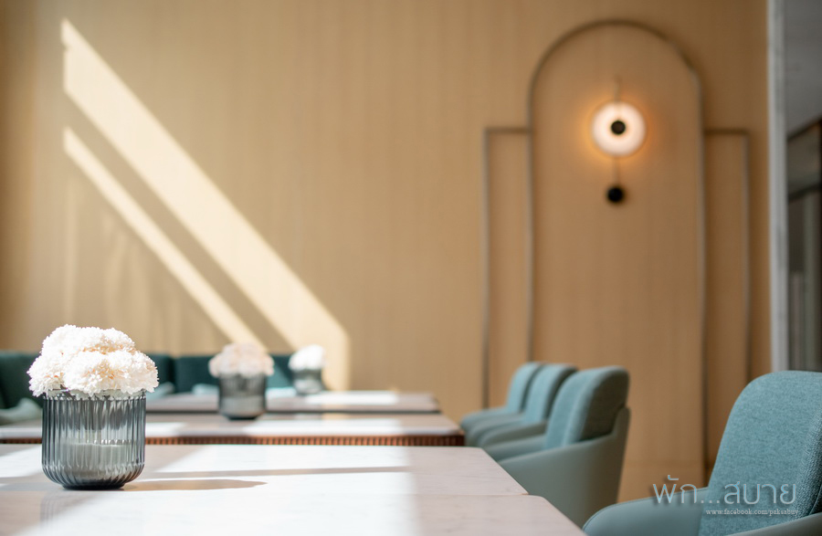ห้องอาหารที่สระว่ายน้ำ ตกแต่ง ขาวๆวิ้งๆ สวยนะ เห็นแล่วนึกถึง รีเซริฟที่สมุย ฟีลและโทนสีก็คล้ายๆกันเลย