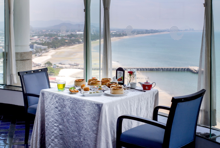 ปิดท้ายที่ห้องอาหารจีนที่วิวสวยสวยที่สุดในหัวหิน ห้องอาหาร White Lotus นอกจากเรื่องวิว ห้องอาหารนี้มีจุดขายเรื่องบุฟเฟ่ต์ติ่มซำราคา 918 เน็ต/คน รวมน้ำ ฮะ